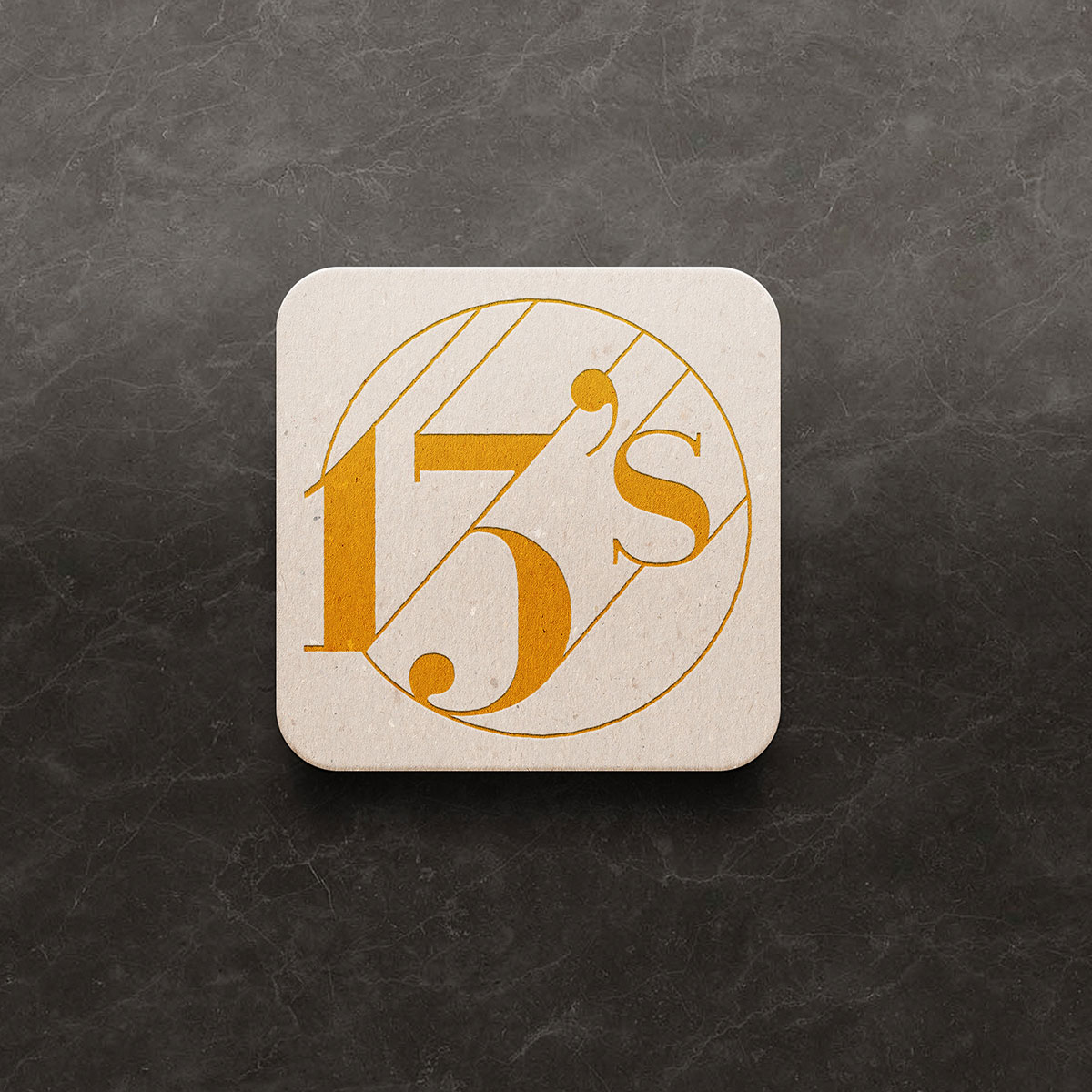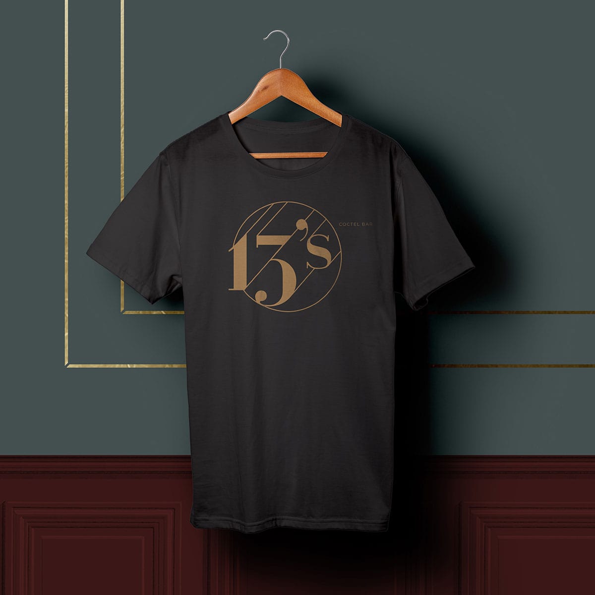Logotipo: 13’s el estilo gráfico que perseguimos en la imagen estaba relacionado con el Art Deco, estilo estético que nos fue sugerido por el cliente, ya que muchos de los bares que respetaba, tenían este estilo.