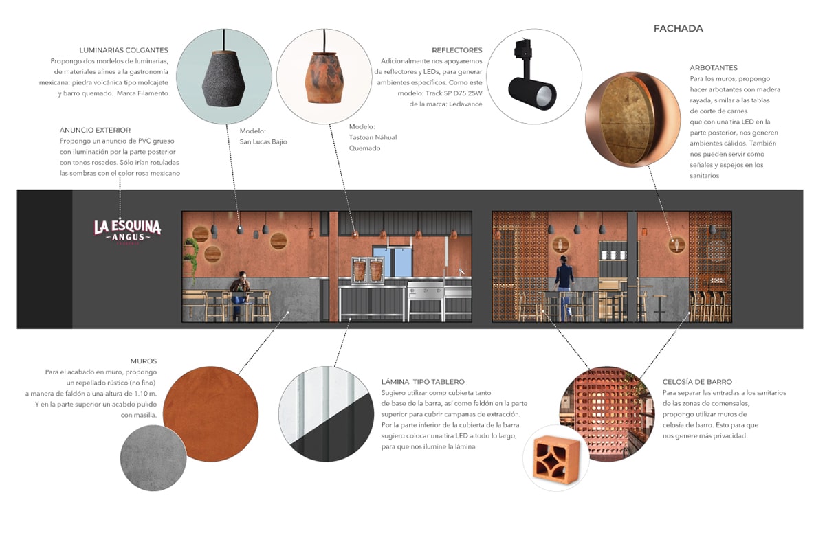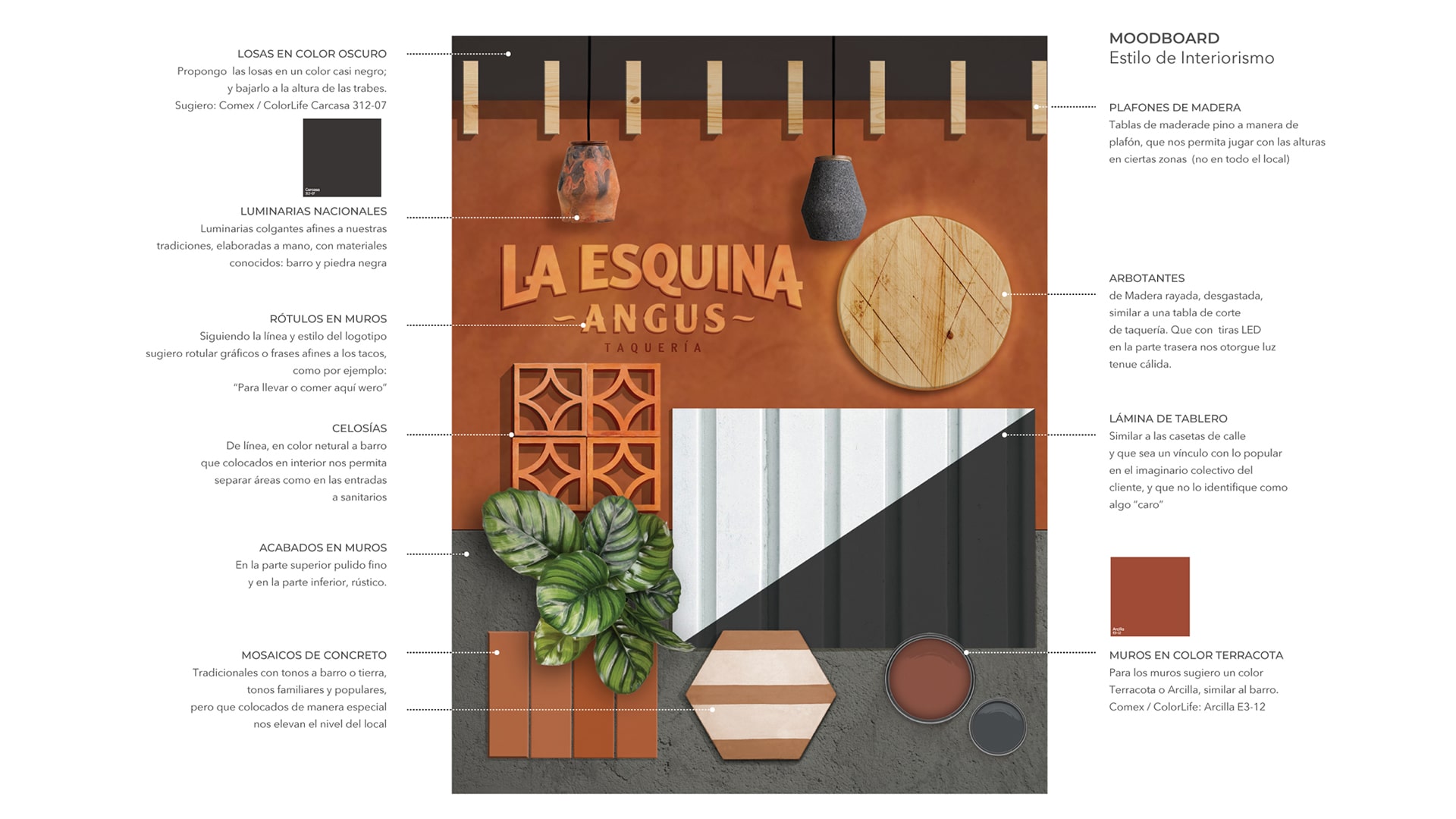 Para la taquería La Esquina Angus desarrollamos la identidad gráfica así como el interiorismo del primer local.